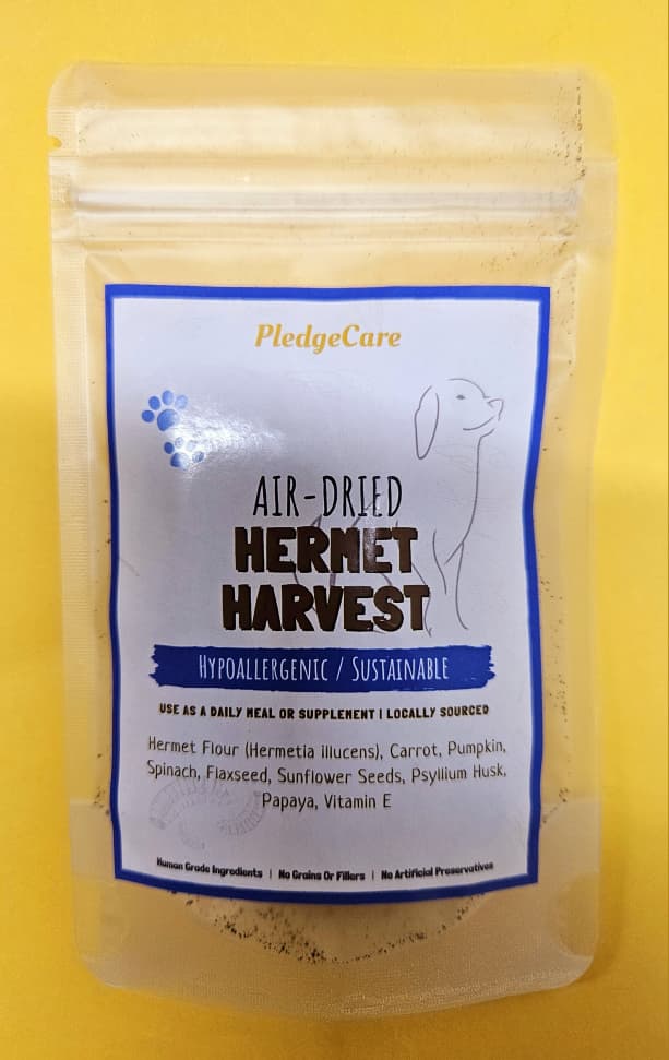Our air-dried Hermet Harvest represents our commitment to crafting a premium, eco-friendly daily meal for your pup, featuring high-quality ingredients sourced from Malaysia.